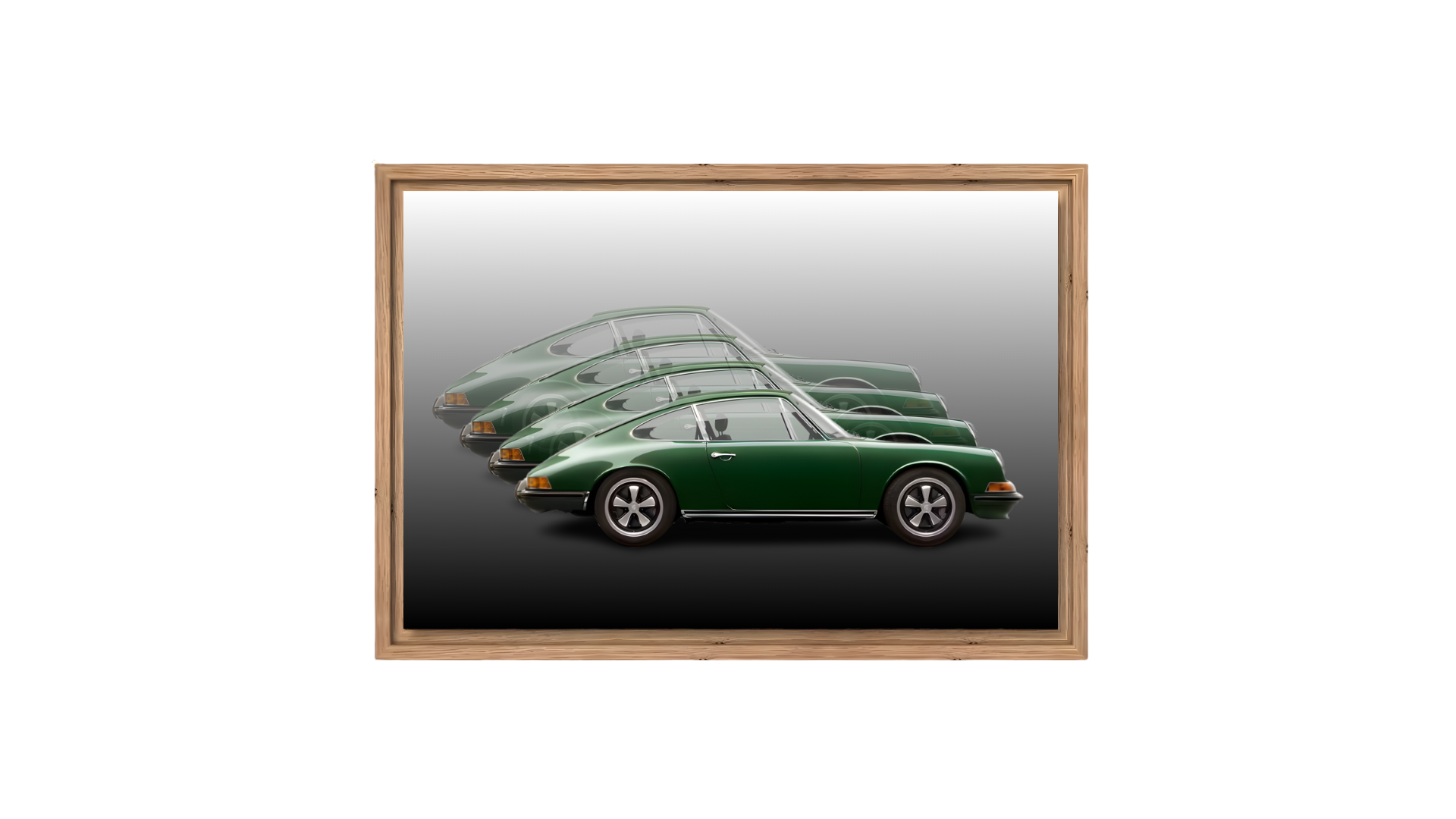 Présentée dans un cadre en bois, cette pièce met en scène l’ADN Porsche dans toute sa pureté : équilibre, authenticité et sportivité originelle.